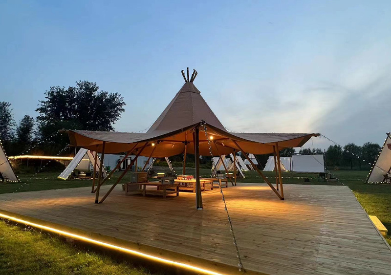 將現(xiàn)狀高爾夫練習場草坪區(qū)域改造成帳篷營地,供游客進行露營、觀星、野餐、篝火晚會等活動,區(qū)塊劃分帳篷搭建位,規(guī)范游客合理安排帳篷位置。設(shè)置露營野餐的服務(wù)點,提供售賣零食飲料和帳篷出租的服務(wù)。
